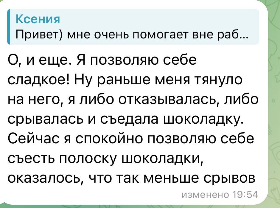 - Вы улучшите отношения с едой, перестанете бояться продуктов, измените свое отношение к еде и улучшите свое общее физическое и психологическое благополучие